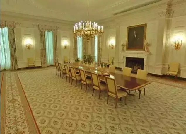 这是东厅白宫的一个房间,可容纳三百位宾客,主要用作大型招待会、舞会和各种纪念性仪式的庆典。