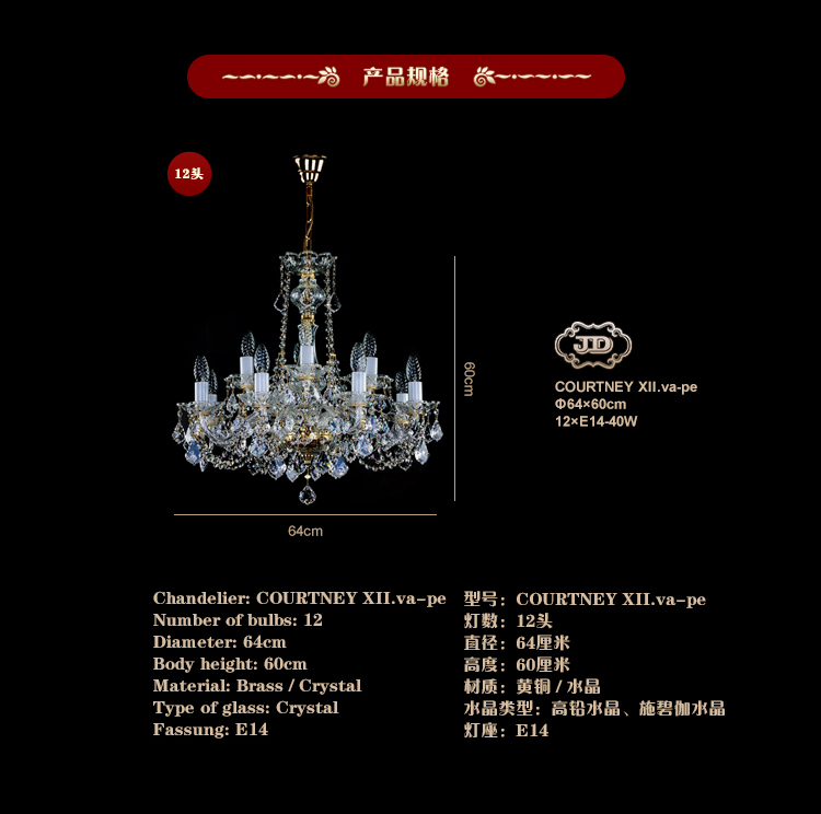 一盏来自捷克的水晶灯,体型适中,直径64厘米,高度60厘米,适合安放无论是餐厅,卧室,玄关等空间居中的房间。