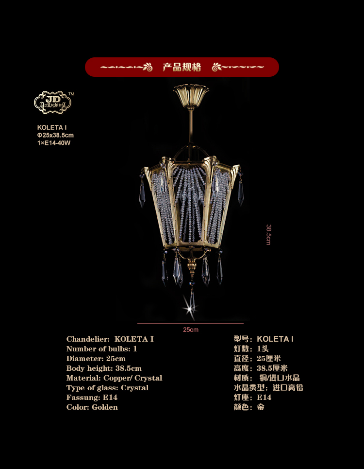 捷克原装进口ART公司出品:KOLETA I(灯具代码),灯具整体的直径只有:25CM,高度:38.5CCM,受其风格所限适合安装的软装环境较少,美式复古风。体积娇小,玄关、过道、卧室、花园等皆适合安装,PS.大空间房间安装的话可以考虑放两盏作为装饰。
