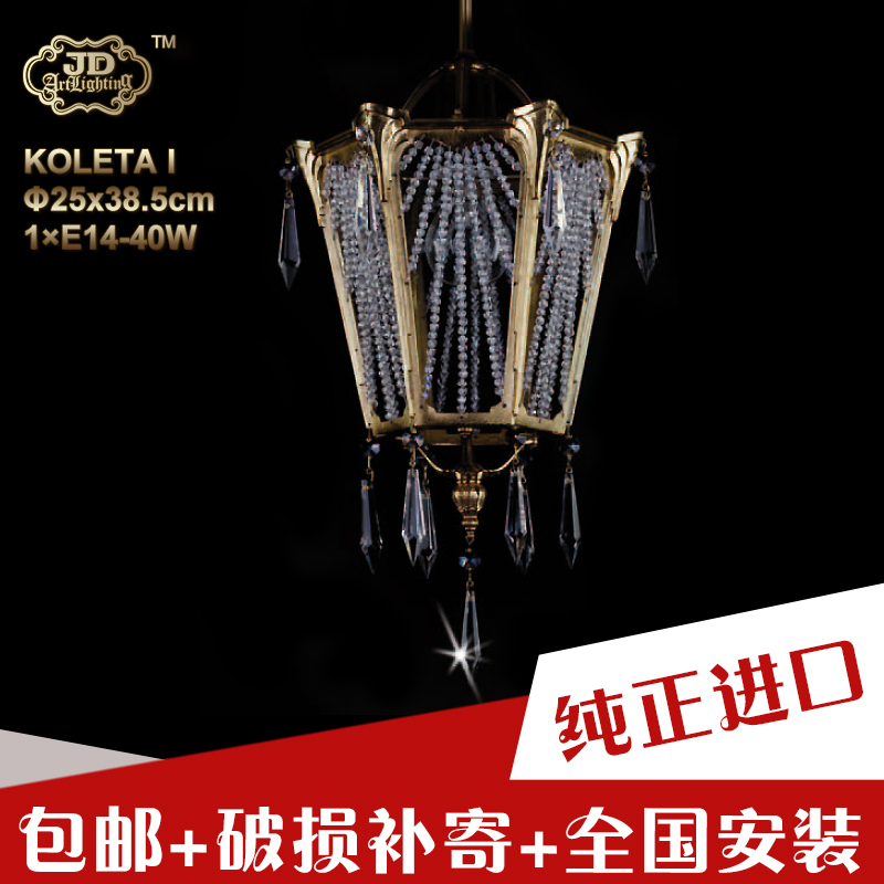 造型复古的黄铜灯架,小巧的水晶珠串联成的灯罩,晶莹的菱形水晶垂饰,搭配暖黄灯光使整盏灯散发着质朴的气质。