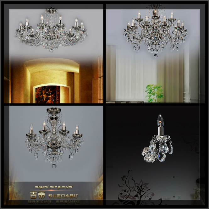 吊灯:Coted全铜镀镍水晶灯系列中的双层吊灯分12头、15头和18头。12头和15头吊灯高度为81公分,要求层高高度在3米左右,亦或者可以放在空间稍大的餐厅(餐桌正上方),18头吊灯高度94公分,对房间层高有要求。镍色系列双层吊灯适合空间层高较高但是面积适中的房间。