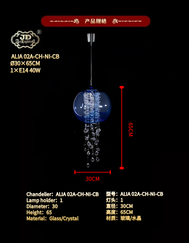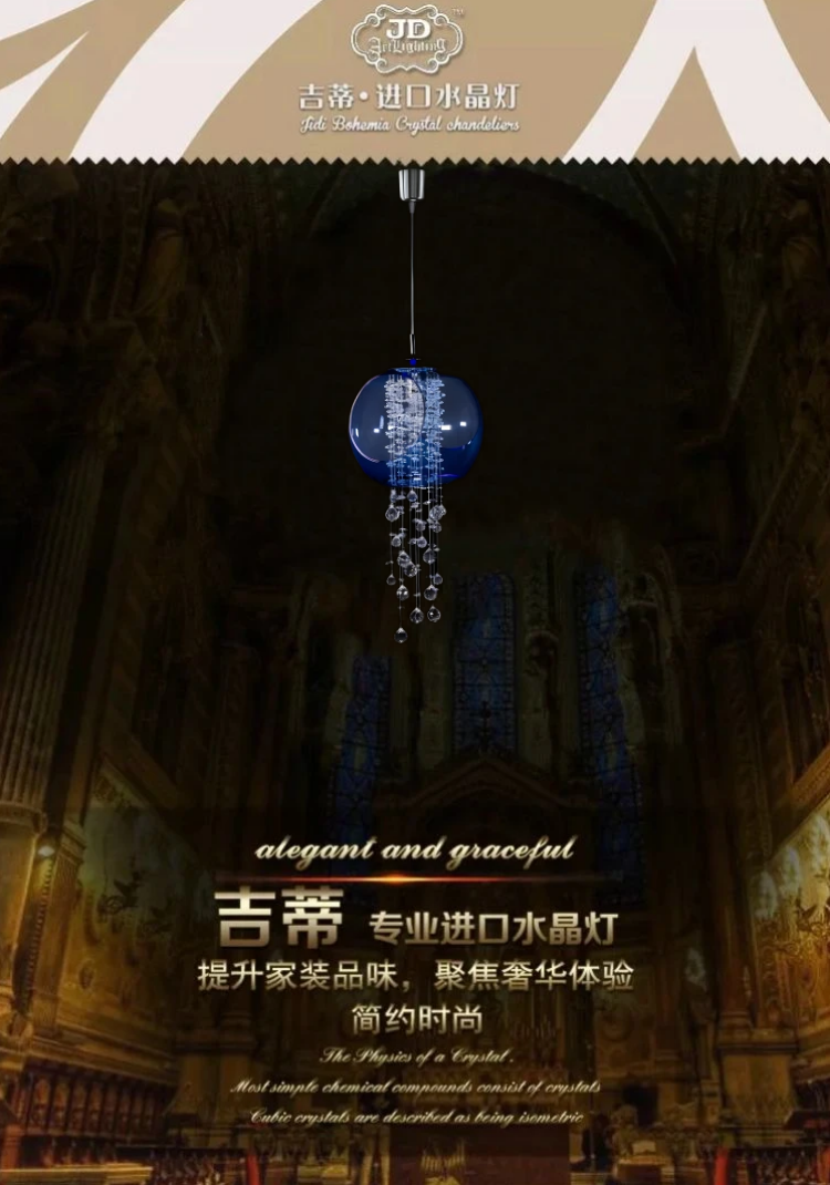 * 表示必填采购:捷克工厂原装进口新款现代餐厅吧台过道卧室床头蓝色水晶玻璃吊灯